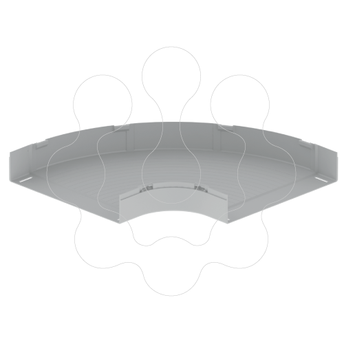 Curva plana 90° Unex 100X500 em U23X. Para alterar direção 90º. Cobre os cortes do caminho de cabos, proporcionando um melhor acabamento. Recomenda-se colocar suportes por baixo das curvas. Cor: Cinzento. Material isolante. Segurança elétrica, mecânica e em caso de incêndio. Não perde secção com respeito ao caminho de cabos. Rapidez e facilidade de montagem. Não são necessárias uniões para a montagem.