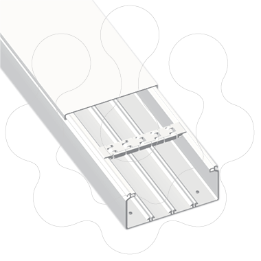 Calha Unex 40x60 em U43X. De tampa exterior, para distribuição. Compartimentação flexível para a condução e proteção de cabos elétricos e de sinal. Inclui-se 1 ponte em cada 0,5m. de calha. Base perfurada cada 250mm. Comprimento: 3m. Cor: Branco. Recomendadas ITED. Segurança: mecânica (proteção contra impactos IK08), elétrica (material isolante, IP4X montada sobre parede) e em caso de incêndio (ensaio do fio incandescente a 960 °C, não propagador da chama). Apta para uso em intempérie. facilidade de instalação: Montagem à pressão da tampa (não e necessário deslizar para montá-la). O ponte retém os cabos e permite acesso independente a cada circuito. Homogeneidade de cores entre elementos de acabamento, adaptadores, caixas de mecanismos e a calha. Pode ser pintada. Liberdade de eleição e combinação de mecanismos com quadro e placa, com ou sem caixa. Separador de circuitos amovível.