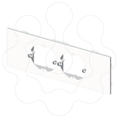 Placa Unex para 2 mecanismos universais em U43X. Para adaptação de mecanismos universais, normalizados segundo CEE7 para embutir. Inclui-se 2 parafusos pré-montados. Material isolante, sem halogéneos. facilidade de instalação. proteção contra danos mecânicos grau IK08.