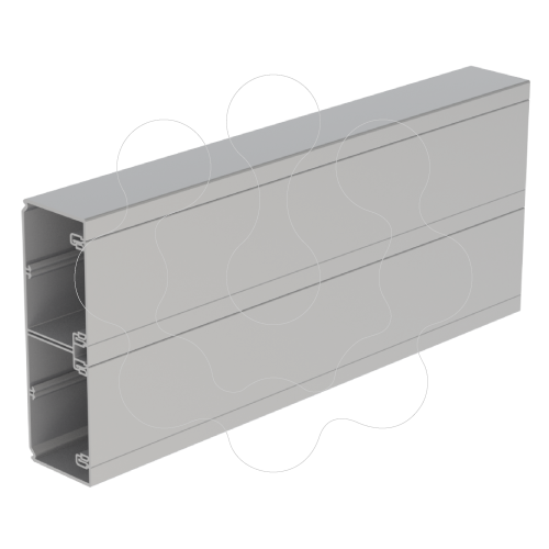 Calha Unex 70x210 de 2 tampas (80 e 80 mm) em U23X. De 2 tampas interiores, para a adaptação de mecanismos. Compartimentação fixa para acesso independente de serviços (eletricidade, comunicações, etc. ). Possibilidade de compartimentos adicionais com separador. Pode encostar-se ou encastrar em paredes e mobiliário. Base perfurada a cada 250mm. Separadores perfurados a cada 125mm para a passagem de cabos entre compartimentos. Comp. : 2m. Cor: Alumínio. Segurança: mecânica (proteção contra impactos IK07), elétrica (material isolante, IP4X) e em caso de incêndio (ensaio do fio incandescente a 960 °C, não propagador de chama). Liberdade de escolha e combinação de mecanismos, sem limite de unidades. facilidade de instalação: Montagem à pressão da tampa, extraível mediante ferramenta. facilidade de integração com outros elementos construtivos (mobiliário, divisórias, separadores, etc. ). Homogeneidade de cores entre os elementos de acabamento, adaptadores de mecanismos e caminho de cabos. Separador móvel com sólida montagem frontal, para separar correntes fortes e fracas. Pode pintar-se. Película protetora.