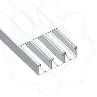 Calha Unex 70x230 de 3 tampas (65, 65 e 65 mm) em U23X. De 3 tampas interiores, para a adaptação de mecanismos. Compartimentação fixa para separar o acesso aos serviços (eletricidade, comunicações, etc. ). Compartimentos divisíveis com separador. Base perfurada cada 250mm para fixação à parede. Separador perfurado cada 125mm. para a passagem de cabos entre compartimentos. Comprimento: 2m. Cor: Branco. Recomendadas ITED: rede individual. Segurança: mecânica (proteção contra impactos IK09), elétrica (material isolante, IP4X) e em caso de incêndio (ensaio do fio incandescente a 960 °C, não propagador da chama). Liberdade de eleição e de combinação de mecanismos. facilidade de integração com outros elementos da construção (mobiliário, divisórias, etc. ). Homogeneidade de cores entre elementos de acabamento, adaptadores de mecanismos e calha. Pode ser pintada. facilidade de instalação: Possibilidade de encostar ou encastrar em paredes e mobiliário. Montagem frontal da tampa e dos elementos de acabamento. Compartimentos independentes com separador fixo. Separador de fácil montagem frontal e sólida fixação à base da calha, para separar correntes fortes e fracas. Se as correntes fortes e fracas estão separadas pode-se prescindir do uso da caixa de mecanismos. Película protetora.