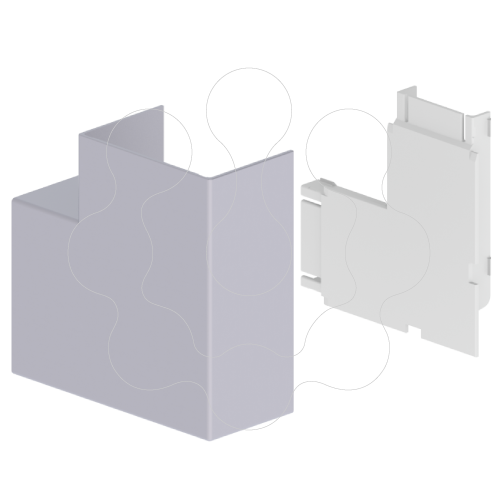 Ângulo plano Unex cor alumínio 50x80 em U24X. Para alterar a direção 90º. Cor alumínio. Material isolante. facilidade de instalação. A peça interior permite a medição evidente da tampa e retém os cabos. Pode-se cortar a aba para encostar, encastrar ou derivar a outra calha. A peça exterior cobre as imprecisões dos cortes da tampa e da base. proteção contra danos mecânicos grau IK07.