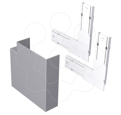 Ângulo plano 70x100 Unex em U24X. Para realizar alterações de direção de 90º. Cor: Alumínio. Material isolante. facilidade de instalação: A peça interior permite a medição evidente da tampa e retém os cabos. A peça exterior cobre as imprecisões dos cortes da tampa e da base. Pode cortar-se a lateral para encostar ou derivar a outra calha. proteção contra danos mecânicos grau IK07.