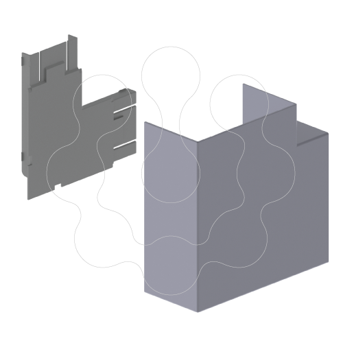 Ângulo plano Unex 70x130 em U24X. Para alterar a direção 90º. Cor alumínio. Material isolante. facilidade de instalação. A peça interior permite a medição evidente da tampa e retém os cabos. Pode-se cortar a aba para encostar, encastrar ou derivar a outra calha. A peça exterior cobre as imprecisões dos cortes da tampa e da base. proteção contra danos mecânicos grau IK07.