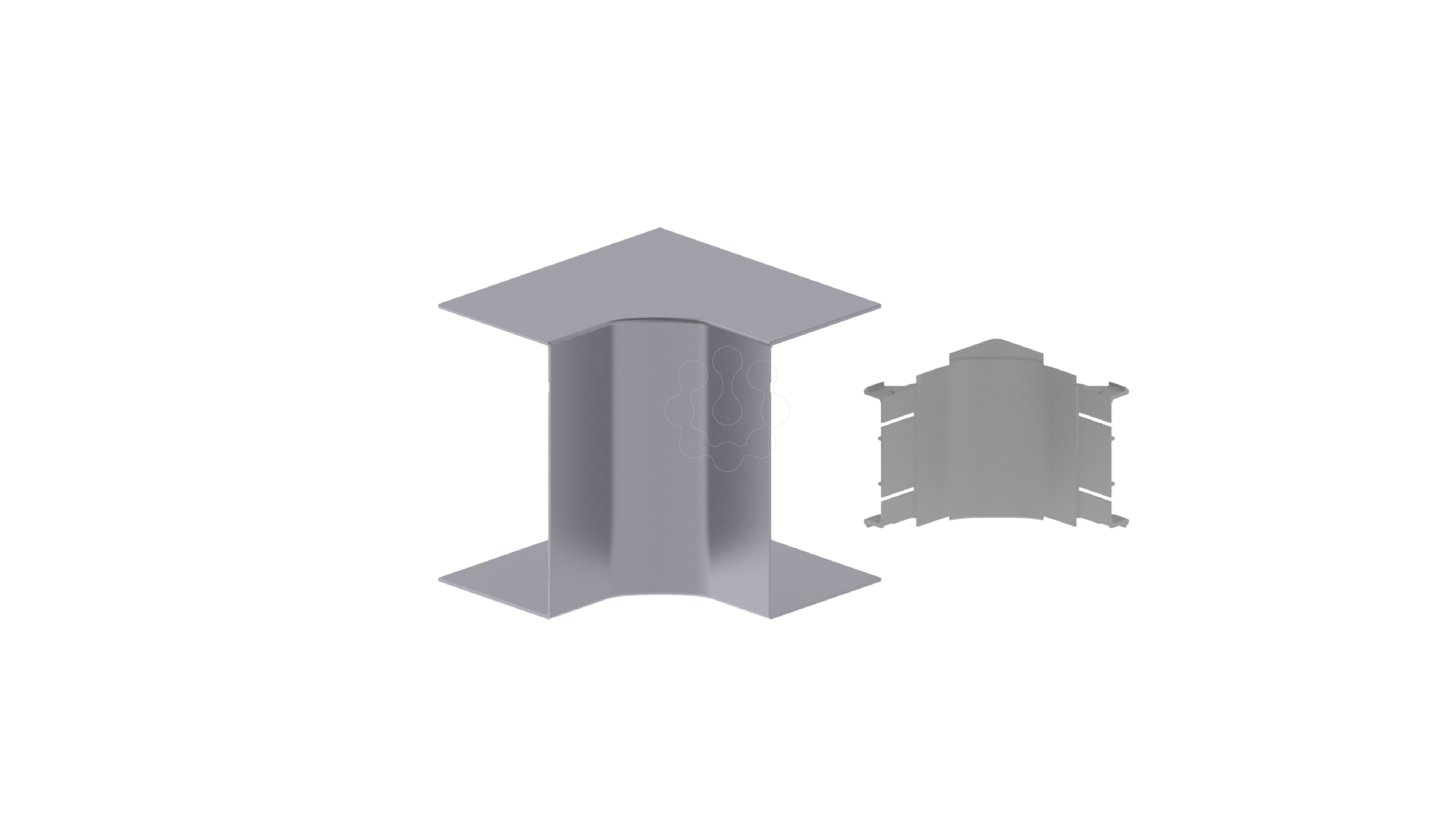 Ângulo interior Unex 70x130 em U24X. Para cobrir e proteger os cabos. Cor alumínio. Material isolante. Facilidade de instalação. A peça interior permite a medição evidente da tampa e retém os cabos. Pode-se cortar a aba para encostar, encastrar ou derivar a outra calha. A peça exterior cobre as imprecisões dos cortes da tampa e da base. Proteção contra danos mecânicos grau IK07.