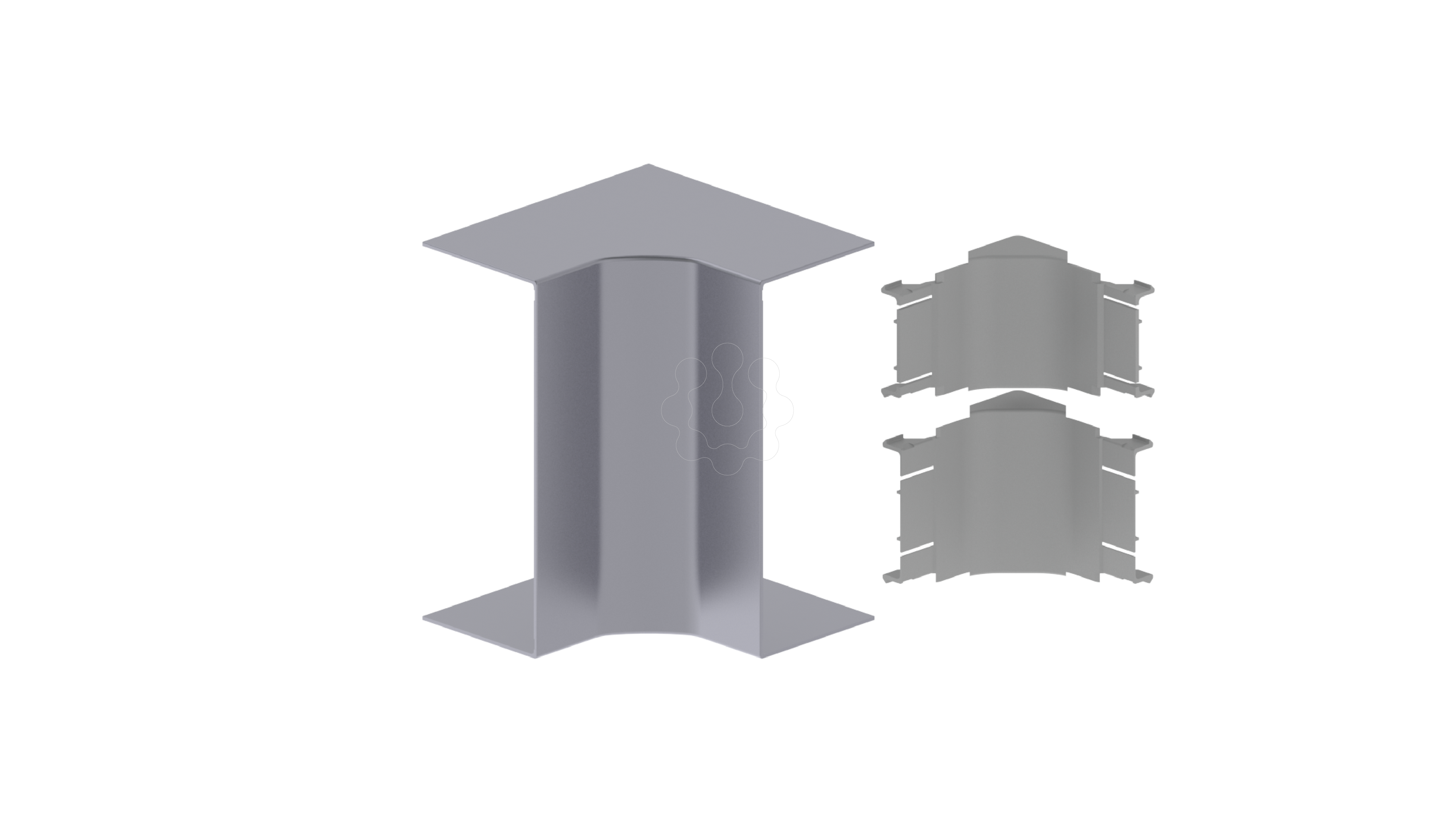 Ângulo interior Unex 70x170 em U24X. Para cobrir e proteger os cabos. Cor alumínio. Material isolante. Facilidade de instalação. A peça interior permite a medição evidente da tampa e retém os cabos. Pode-se cortar a aba para encostar, encastrar ou derivar a outra calha. A peça exterior cobre as imprecisões dos cortes da tampa e da base. Proteção contra danos mecânicos grau IK07.